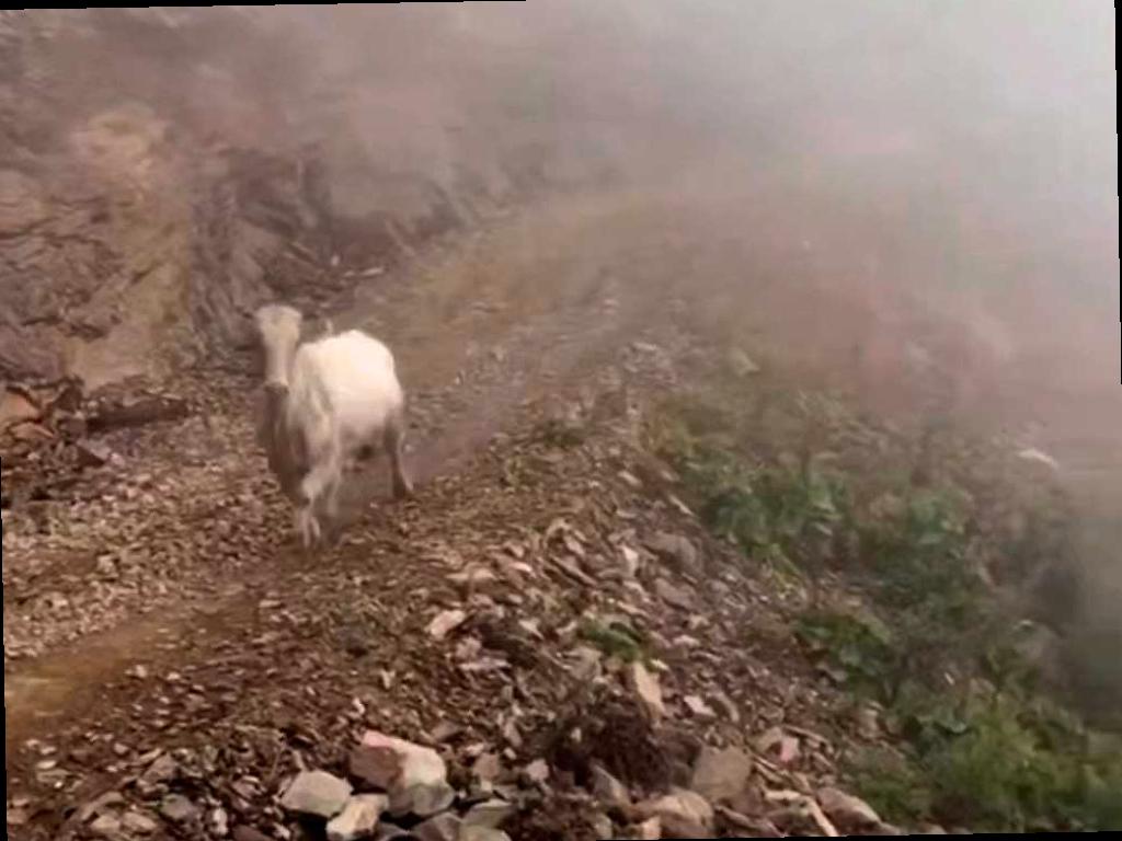 Группа туристов столкнулась с атакой коровы на узкой каменистой тропе. Животное приближалось к ним с энергичным видом, не отрывая взгляда от оператора, который успел снять происходящее.