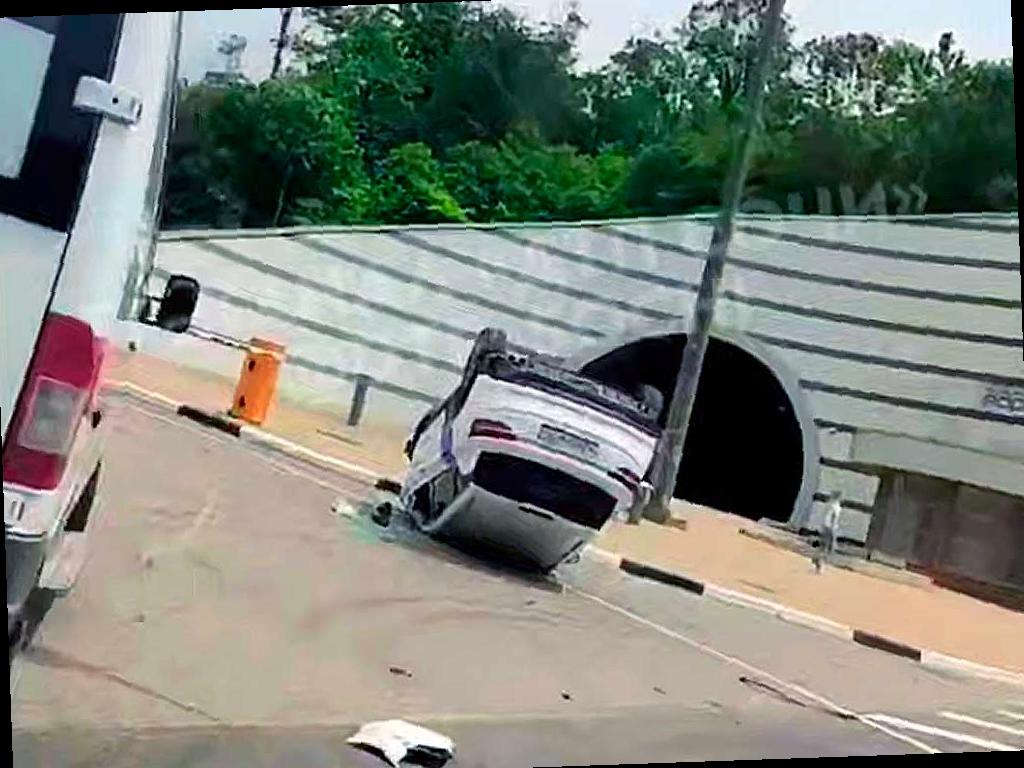 Каршеринг перевернулся перед тоннелем на Дублере в Сочи