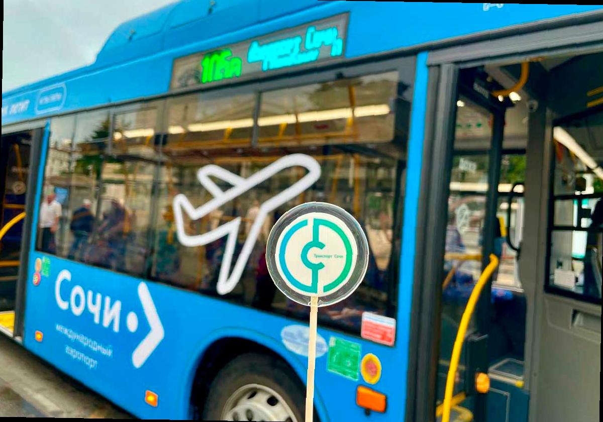 Теперь вы сможете легко узнать автобус №105a благодаря тематическим изображениям на нем. Это особый подарок жителям и гостям курорта в честь юбилейного года Аэропорта. Первых пассажиров даже порадовали сладкими сувенирами.