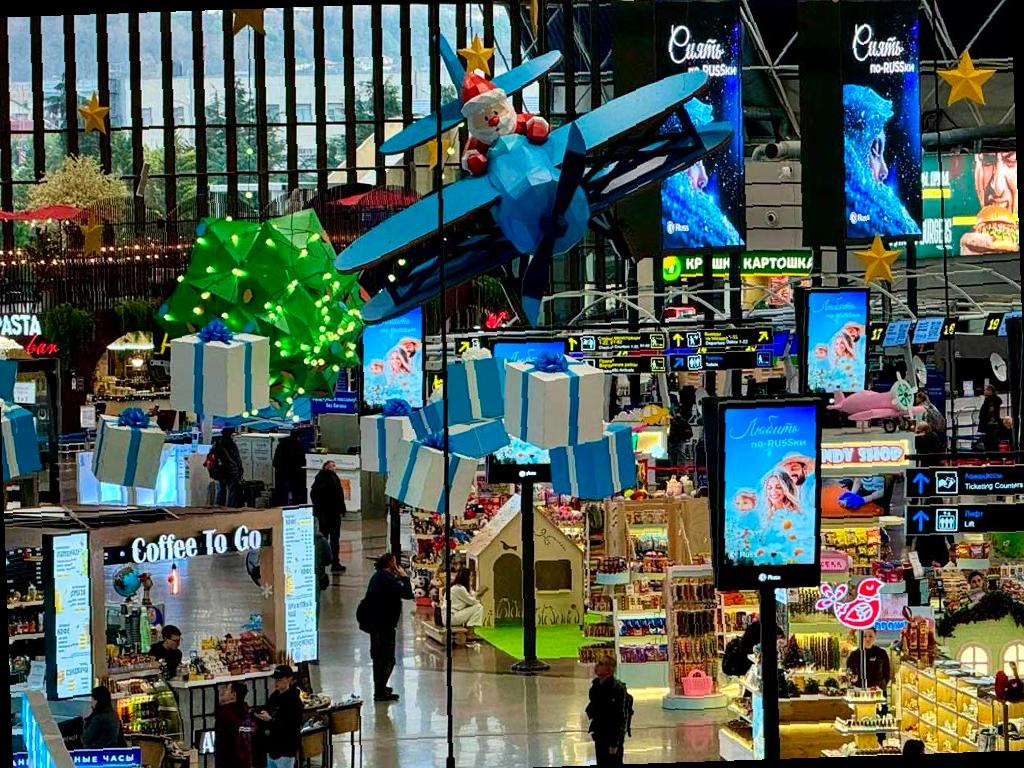 В аэропорту Сочи появилась красивая новогодняя инсталляция, которую установили на пути в зону предполетного досмотра в секторе B2 терминала.