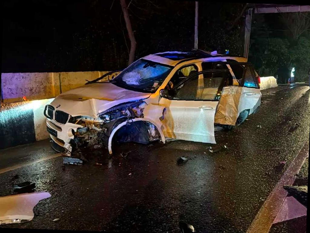 По информации полиции, водитель «БМВ» не справился с управлением, выехал за пределы дороги и столкнулся со столбом. Утром появились видеозаписи происшествия в социальных сетях, на которых видно, как автомобиль врезается в бетонный блок и поднимается в воздух. Автомобиль получил серьезные повреждения.