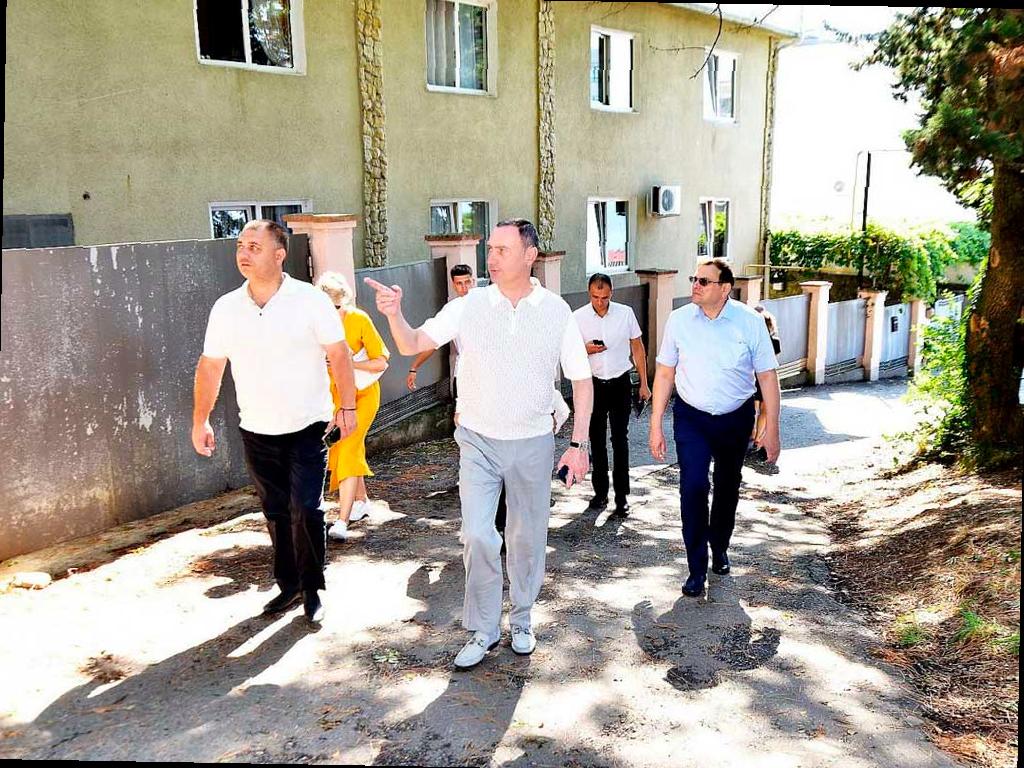 Депутат Законодательного собрания Краснодарского края Виктор Тепляков провел совещание по состоянию дороги в Ряжском переулке. Вместе с ним на место приехали первый замглавы администрации Центрального района Сочи Михаил Харламов и специалисты мэрии города.