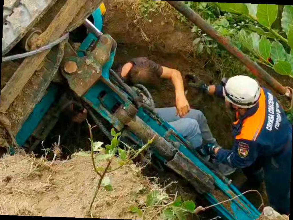 В Сочи экскаватор перевернулся, но водителя удалось спасти