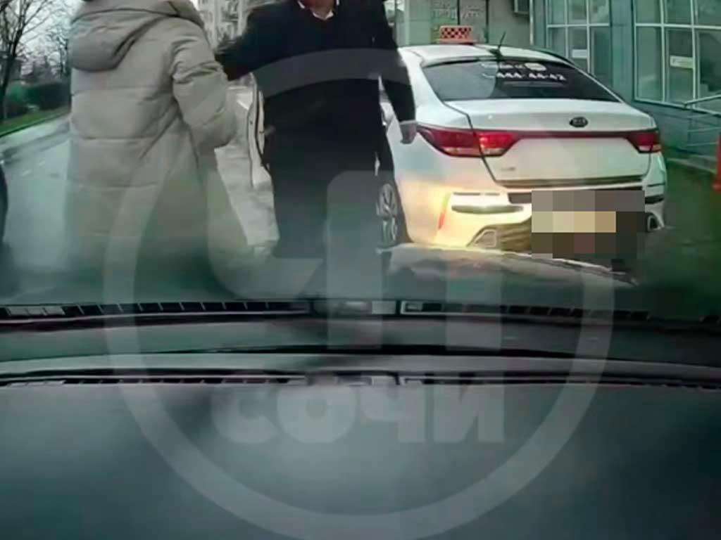 Инцидент случился утром 1 февраля на улице Гастелло в Адлерском районе Сочи. Женщина не могла припарковаться из-за такси, что привело к конфликту с водителем. После словесной перепалки началась потасовка, которую зафиксировал видеорегистратор.