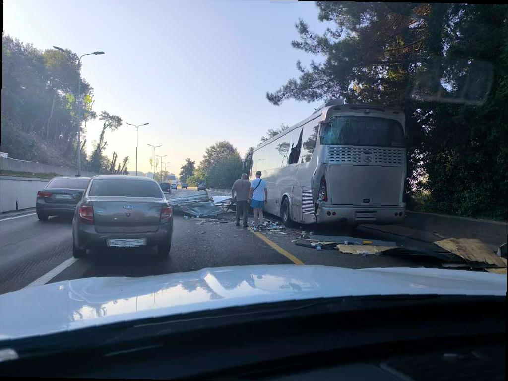 Сегодня утром на автодороге «Сочи – Адлер» случилось столкновение грузовой «Газели» и автобуса недалеко от Кудепсты, сообщает телеграм-канал «ДТП Сочи».